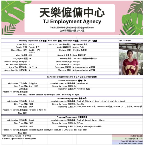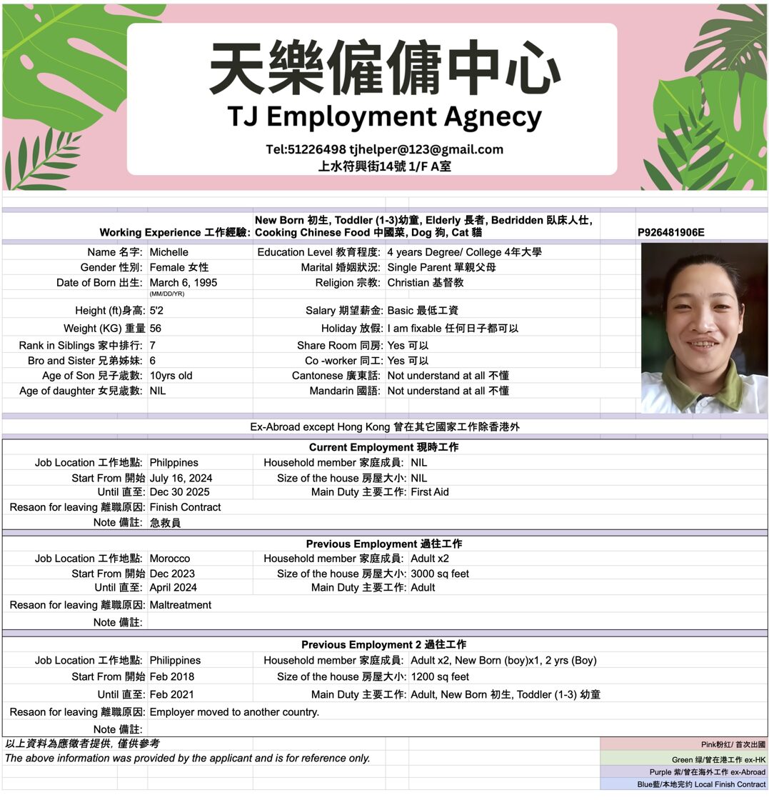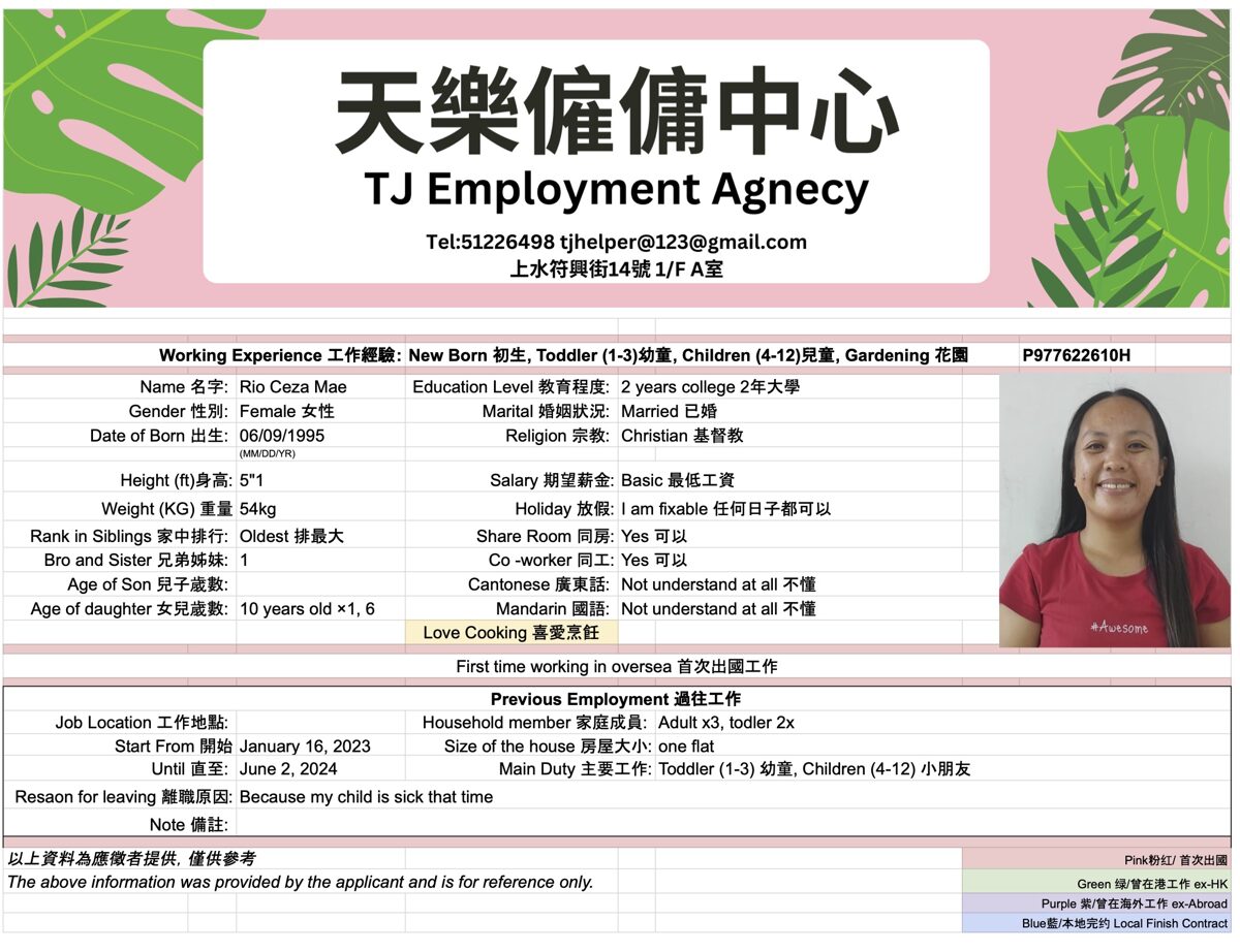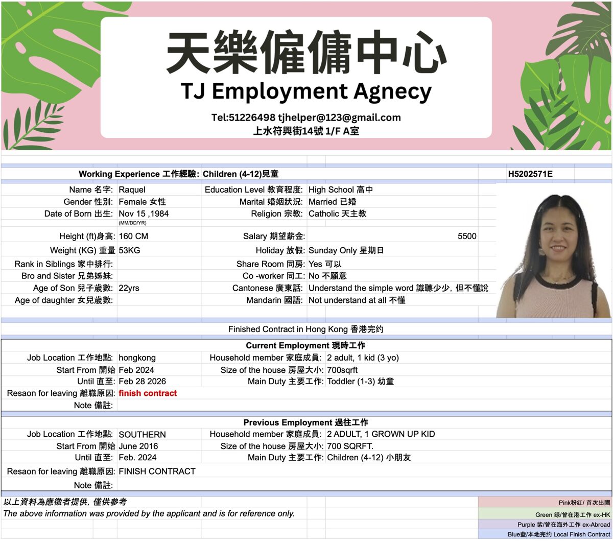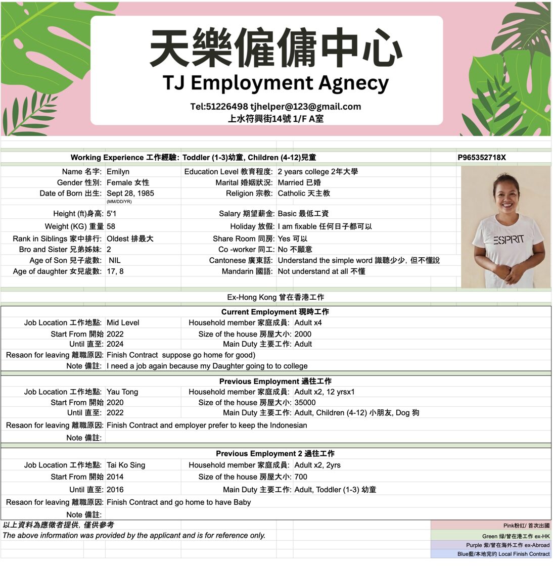H9154992F /9月30日完约/8年同一位僱主/有照僱小朋友經驗